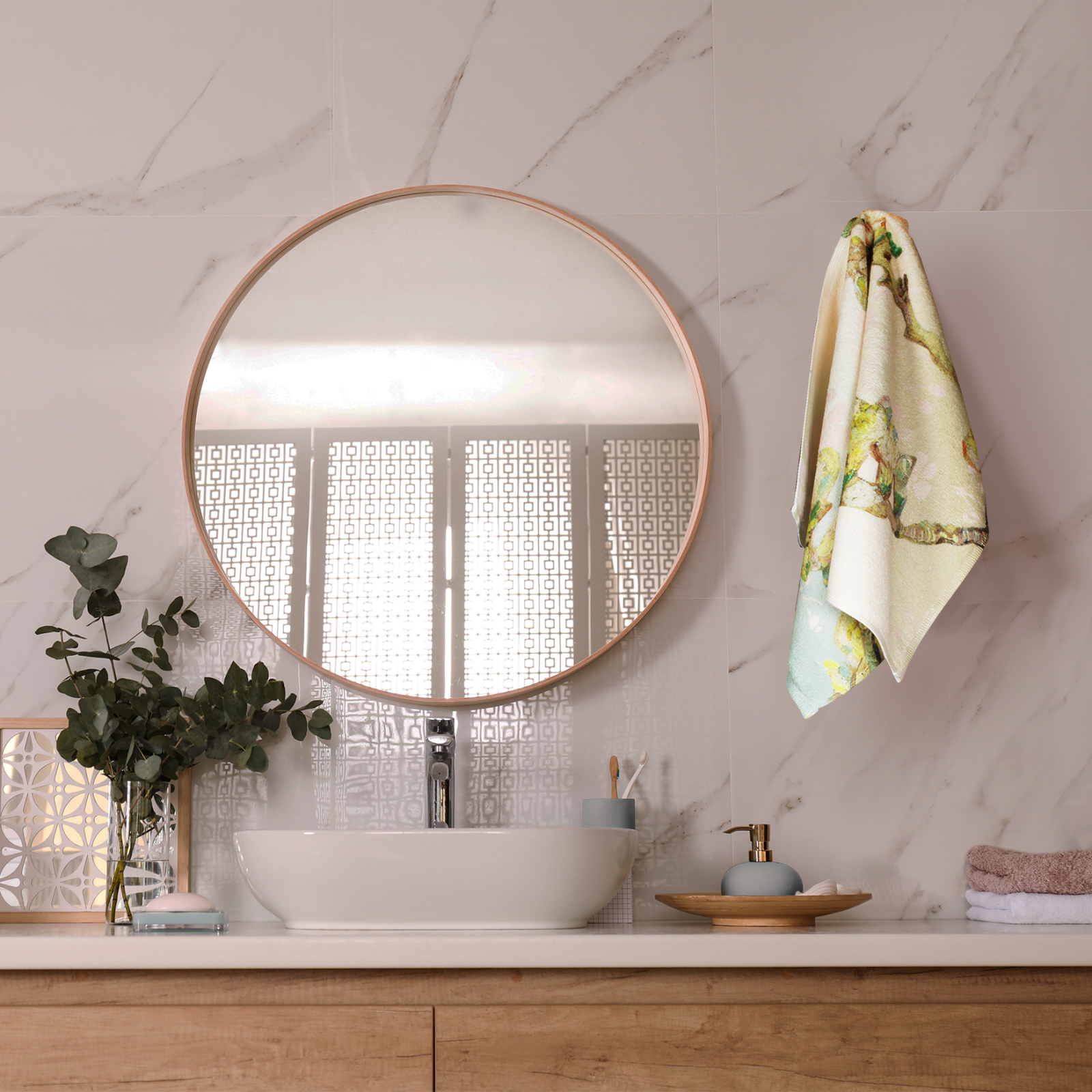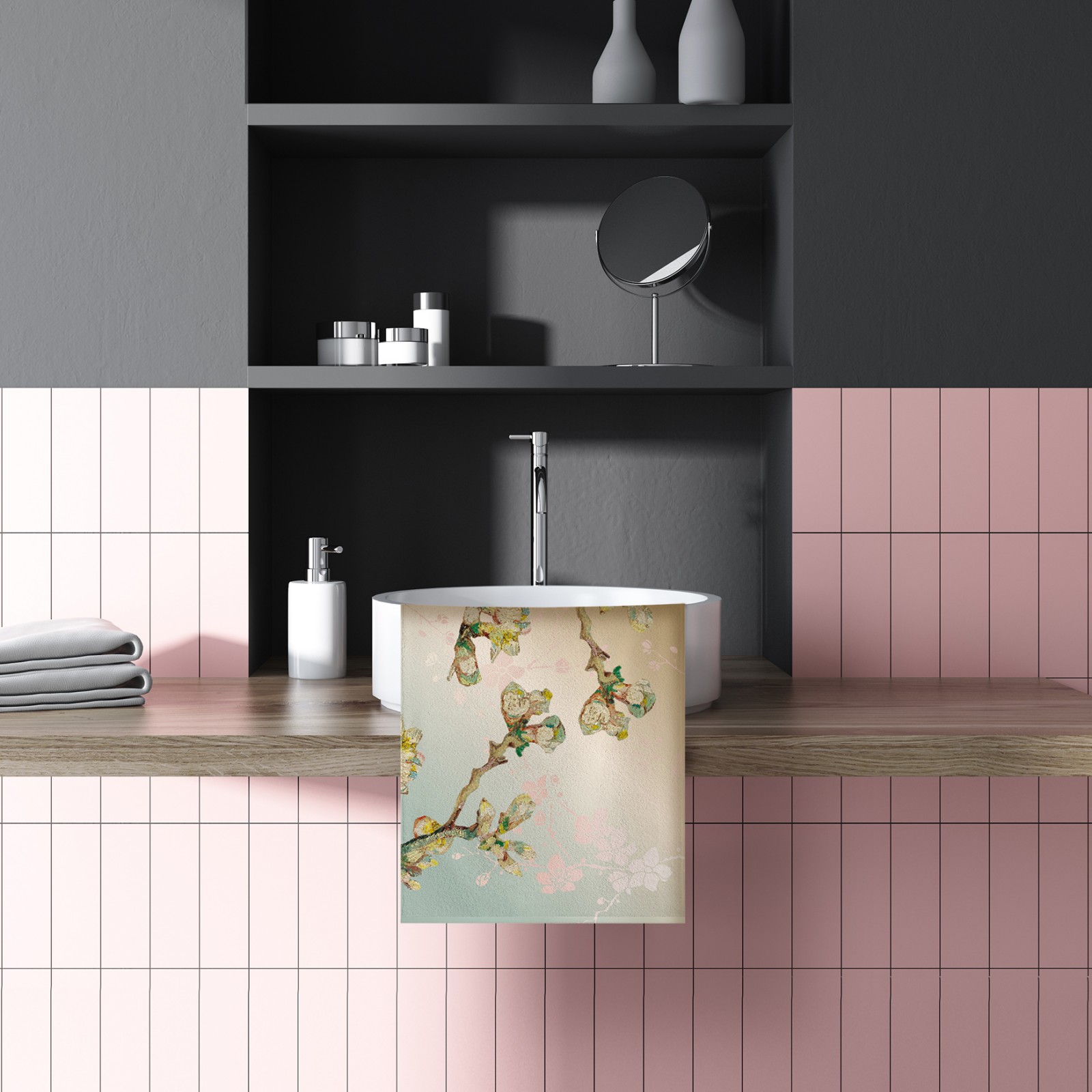 Dit ultra zachte gastenhanddoekje is gemaakt van eco-katoen en gerecycled polyester. Het motief aan de voorzijde laat een detail zien van het bekende werk 'Amandeltak in glas' van Vincent van Gogh. Een handdoekje voor een speciale gast of een bijzonder cadeau om te geven, of te versturen (geschikt voor brievenbuspost) Het handdoekje is prachtig verpakt in een blikje. In twee motieven te koop.