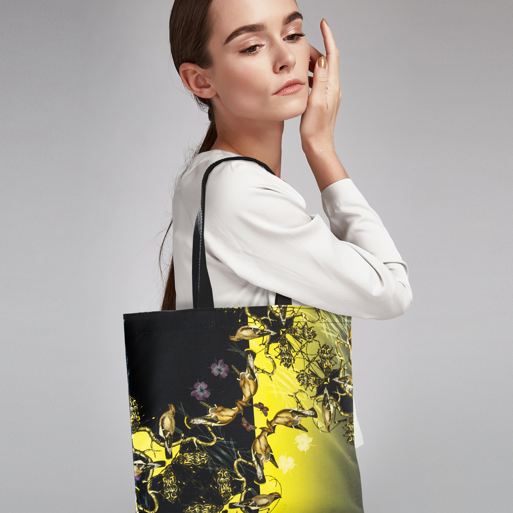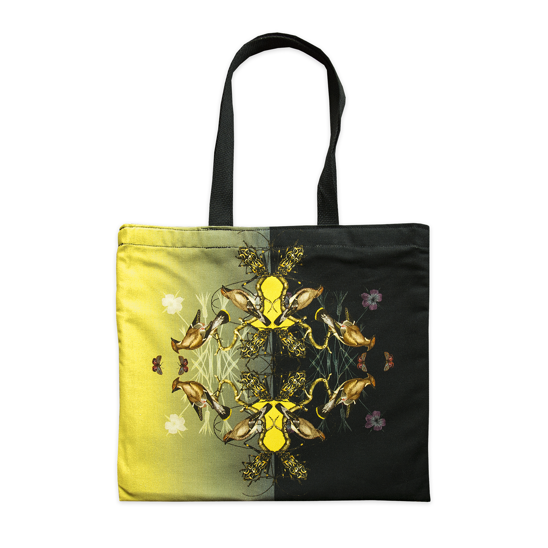 Deze 'Bugs & Birds' tas is gevoerd en trekt zeker de aandacht. De tas is een must wanneer je van shoppen houdt! Het motief is geïnspireerd op oude natuurprenten van de Brabant-Collectie.